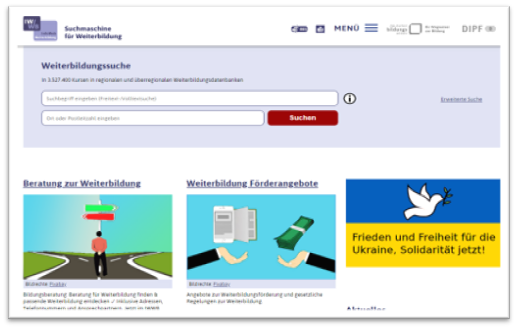 Eine Meta-Suchmaschine für Weiterbildungsdatenbanken finden Sie auf InfoWeb Weiterbildung (IWWB). Dort findet man Angebote der allgemeinen, politischen, wissenschaftlichen und beruflichen Weiterbildung aus anderen Weiterbildungsdatenbanken in Deutschland.